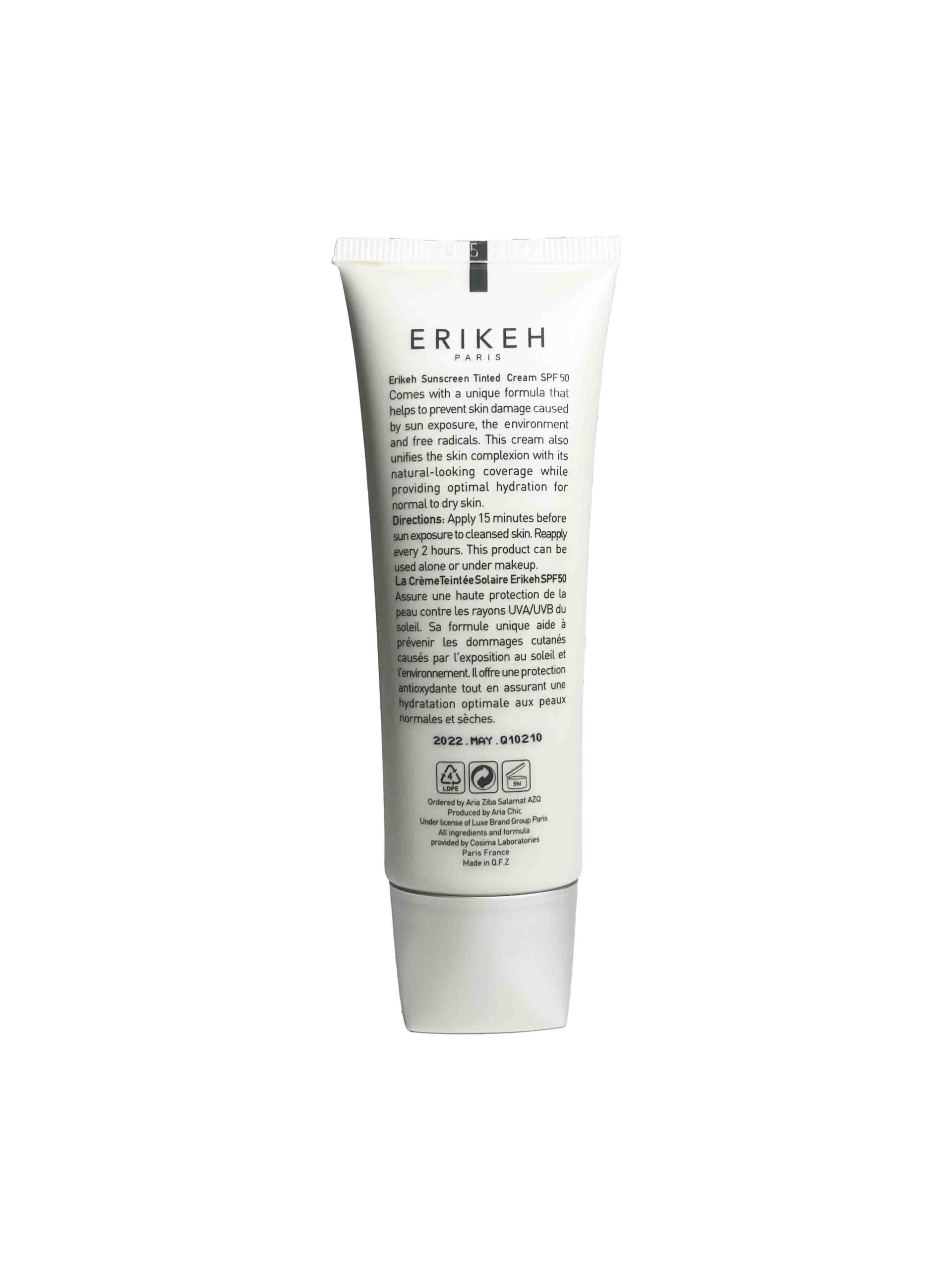 بافت این ضد آفتاب کرمی ولی سبک است و پس از استفاده، به سرعت جذب پوست می‌شود. بر خلاف بسیاری از ضد آفتاب‌های رنگی که ظاهری براق یا چرب روی پوست باقی می‌گذارند، اریکه بافتی نیمه‌مات و بسیار طبیعی به پوست می‌دهد و برای استفاده زیر آرایش کاملاً مناسب است.