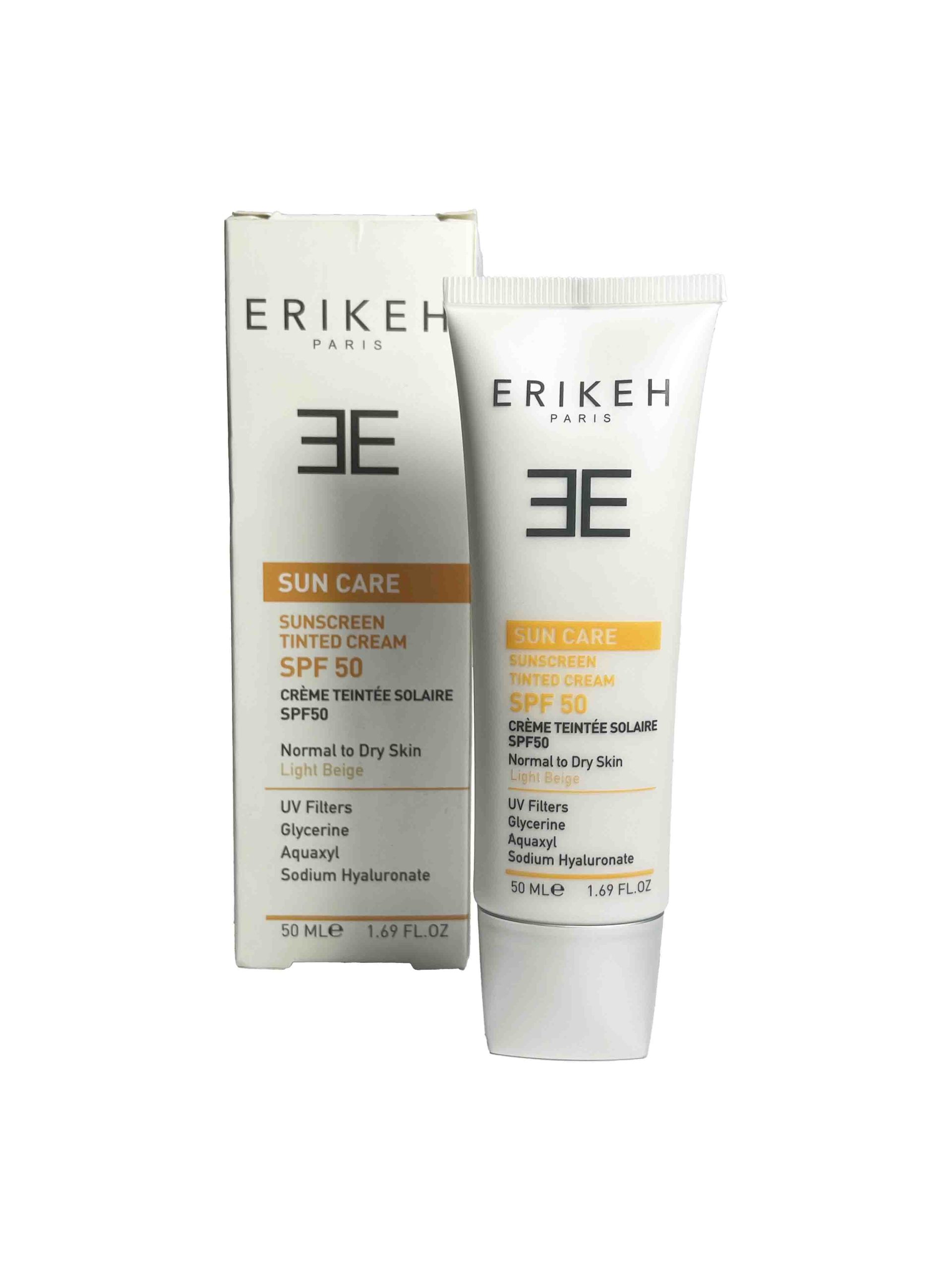ضد آفتاب اریکه رنگی  SPF 50 با رنگ بژ روشن؛ محافظ قوی در برابر آفتاب، ضد لک، پوشش‌دهنده، سبک، فاقد چربی و مناسب انواع پوست، حتی حساس